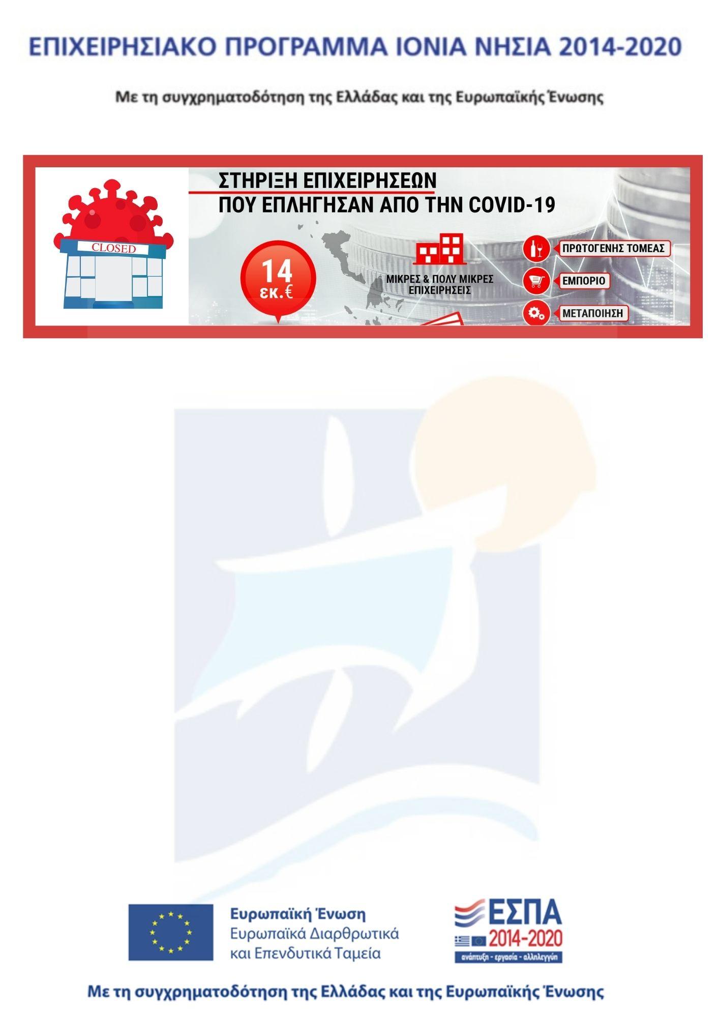 Η επιχείρηση ΘΩΜΑΣ ΜΟΥΖΑΚΙΤΗΣ που εδρεύει στην Περιφέρεια Ιονίων Νήσων εντάχθηκε στη δράση «Στήριξη Επιχειρήσεων που επλήγησαν από την Covid-19 στα Ιόνια Νησιά» Ο συνολικός προϋπολογισμός στήριξης είναι 15.000,00 €.